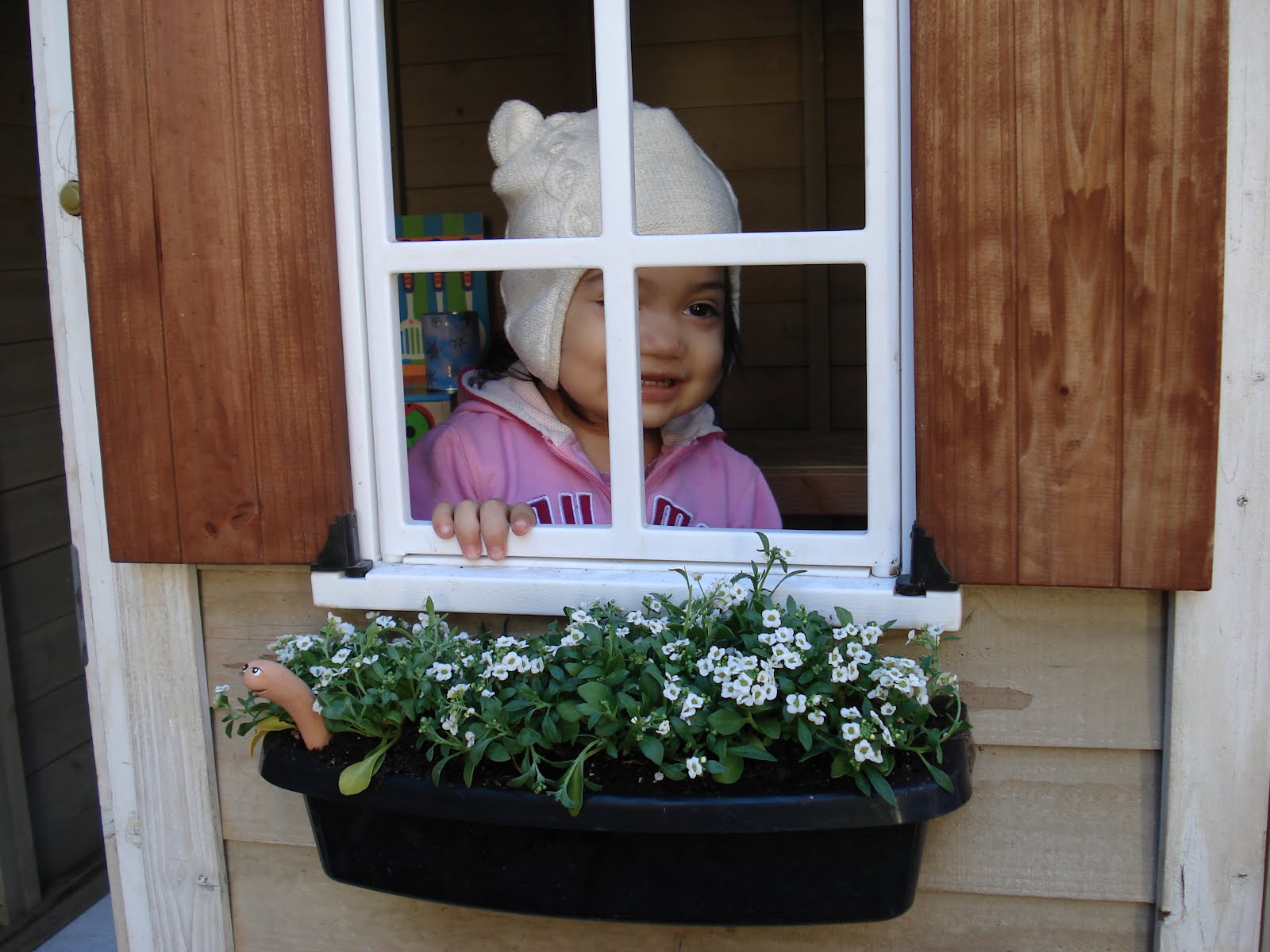 We planted flowers for her. Now we just have to teach her not to pull them out . . .
